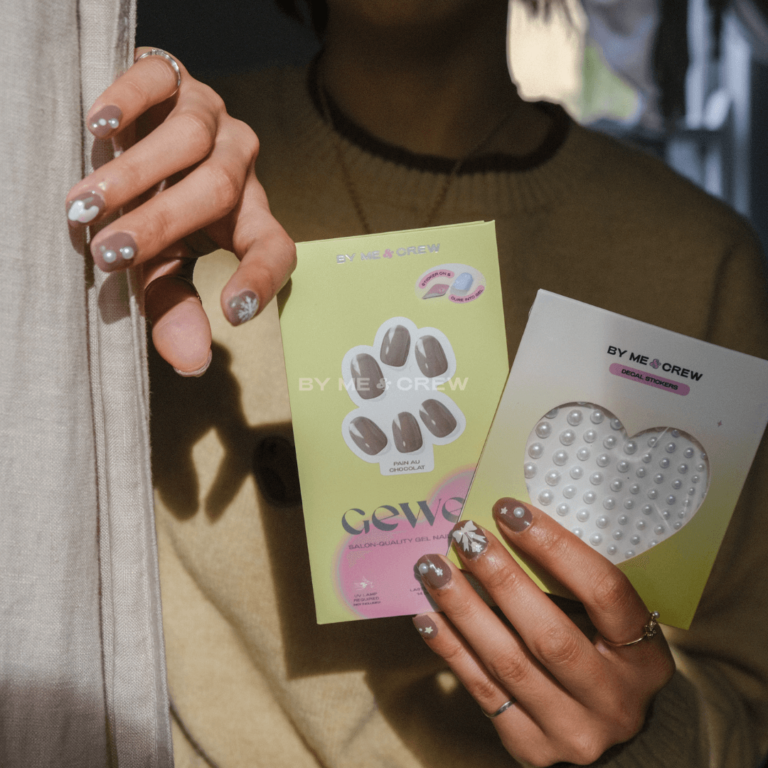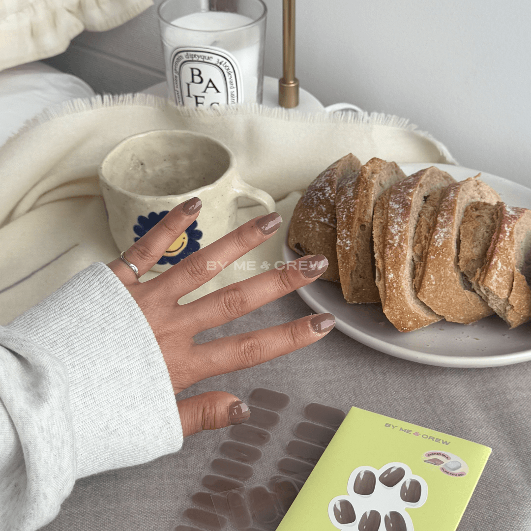 For a truly luxurious look, try the Pain Au Chocolat DIY Semi Cured Gel Nail Stickers set. These high-quality gel nail stickers feature warm, chocolatey tones that perfectly complement a beige base.